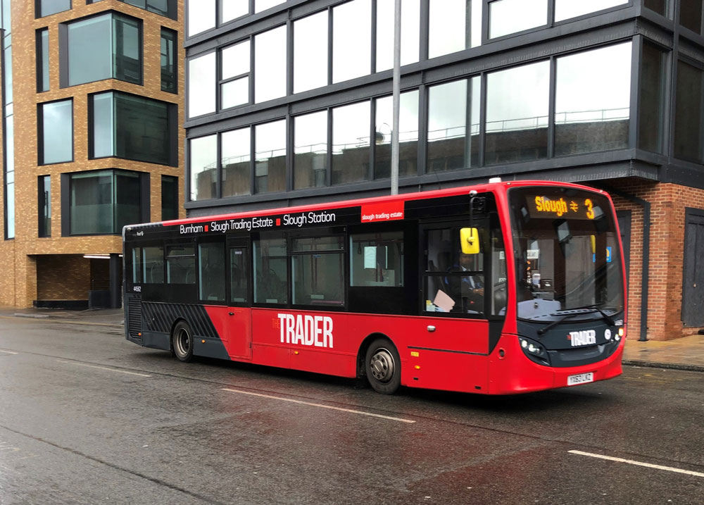 Unusually E200 44562 branded for the 12 Trader route is seen on the 3 on March