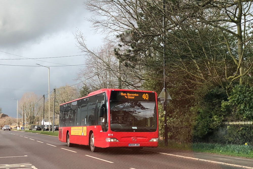858 and 876 with passing Link 40 services in Stokenchurch on February 27th by