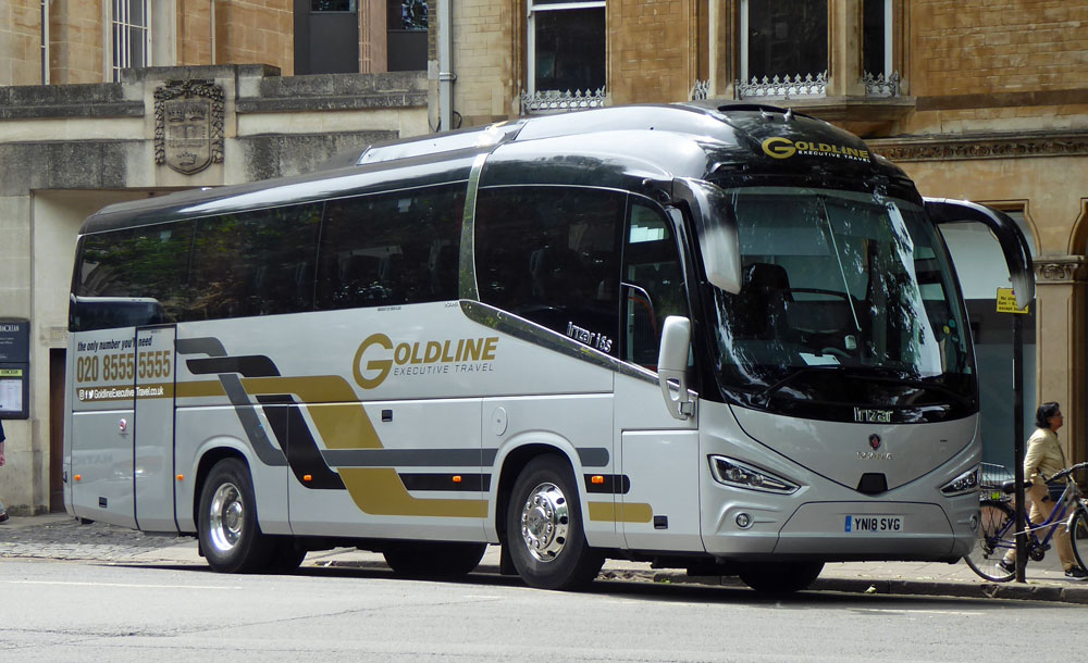 This is a delightful "small" Scania Irizar i6S - Goldline's YN18SVG in St Giles