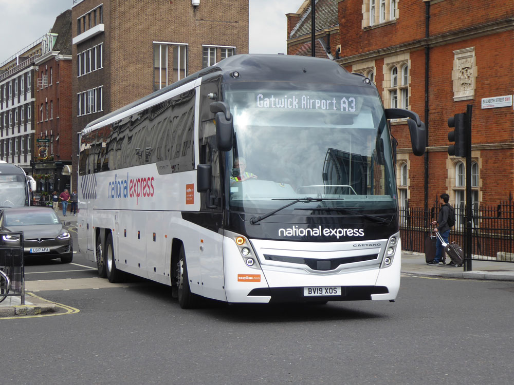 National Express's own fleet BV19XOS pulls out of Elizabeth Street with an A3