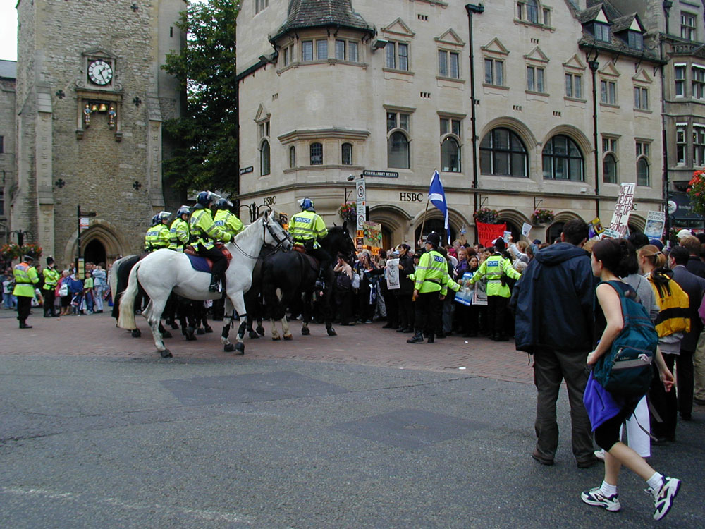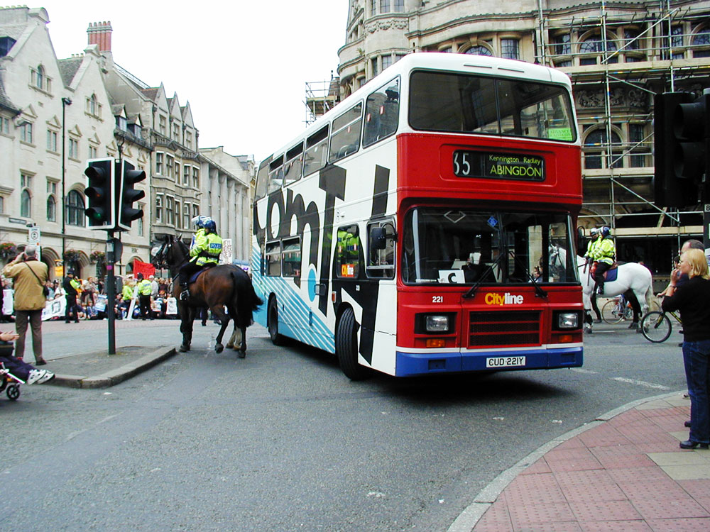 Buses continued to run squeezing by the people, police horses etc. all on June 12th 1999