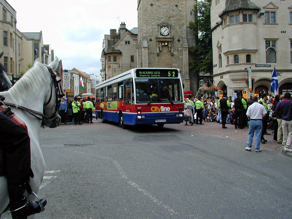 Volvo 637 exits Queen Street on a 52 service to Blackbird Leys.