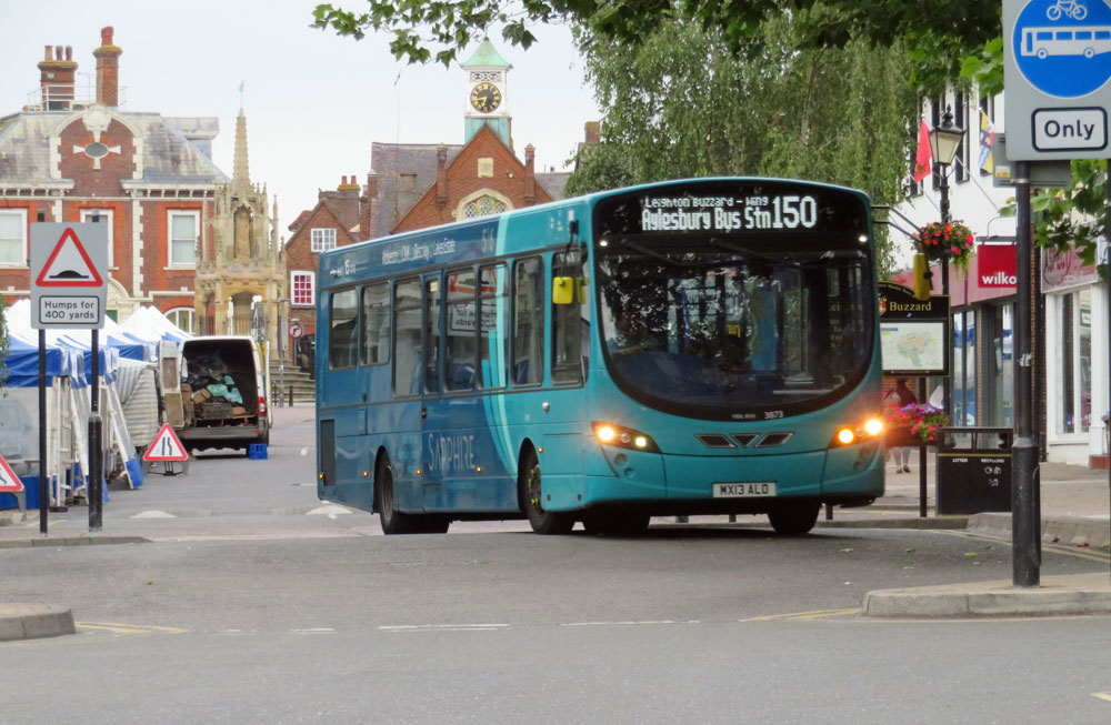 "Arriva VDL 200 3873 (MX13 ALO) arrives at Leighton Buzzard with the 0645 150