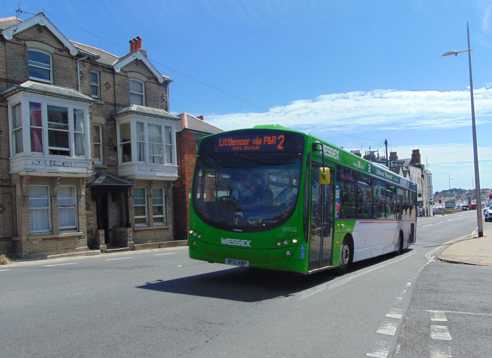 Volvo B7RLE's 69552 (on route 2), 69554 (on route 10), 69550 (on route 4)