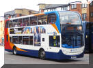 The first Scania OmniCity, 15083, has arrived at Cambridge following single door conversion and repaint at ADL Anston. It is now being prepared with the fitting of branding and for service. The vehicle carries traditional double deck Stagecoach livery, whereas those converted at Ferrymill Motors for Stagecoach East Scotland carry the later Enviro 400MMC-style livery.
