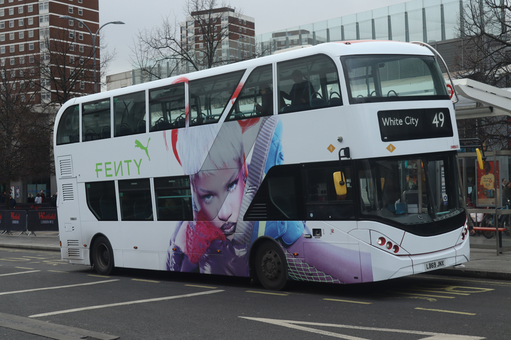 bus is seen at Shepherds Bush station as it nears journey's end on route 49.