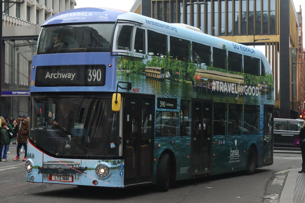 Metroline's LT661 is seen at Tottenham Court Road whilst on route 390.