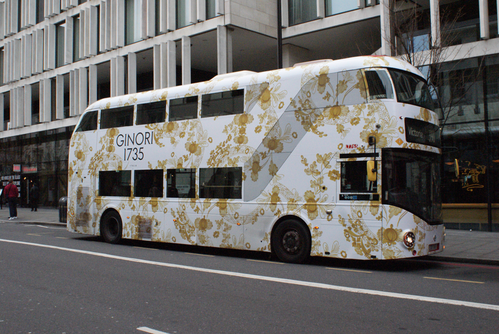 Routemasters each with a unique design on either side. Three were caught