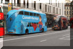 Part open top former Metroline Enviro400 TE879 deputises in wet weather and duplicates on busy evenings.