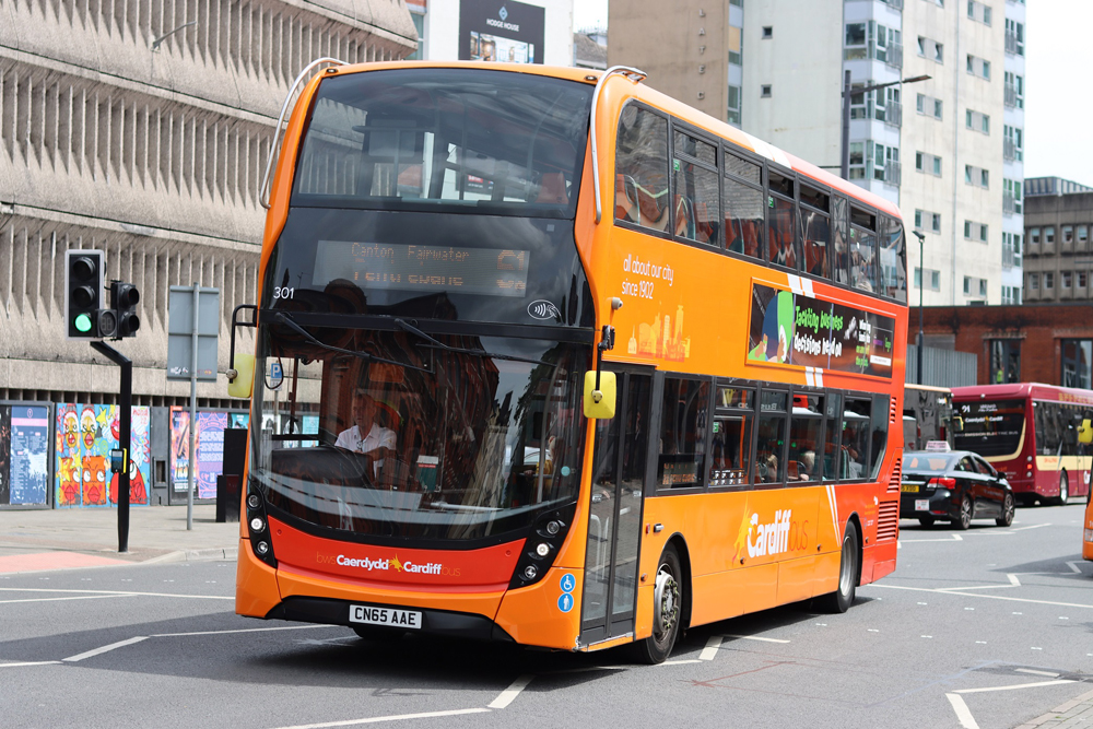 301 (CN65 AAE) - AD E400MMC repainted in the new Cardiff city orange livery.