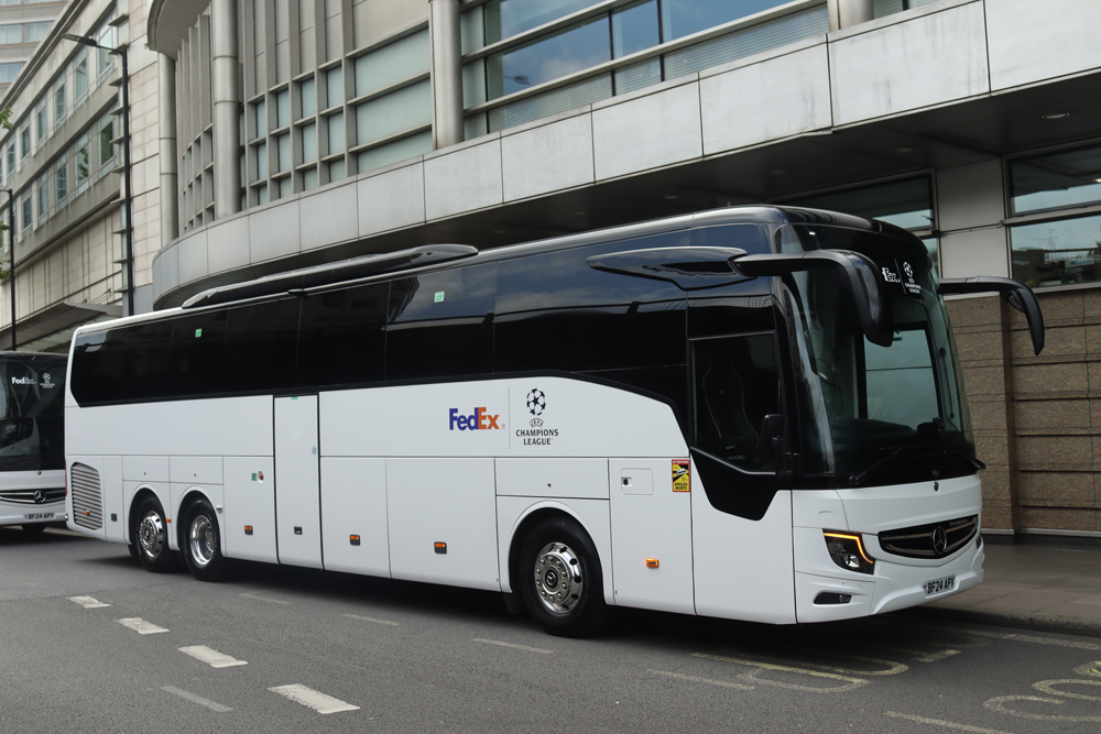 passengers. Operated by Grange Travel, it carries Fed Ex branding as one