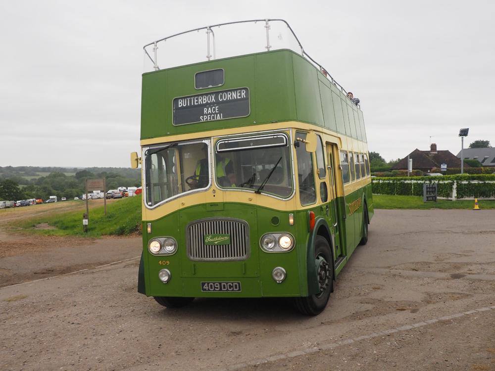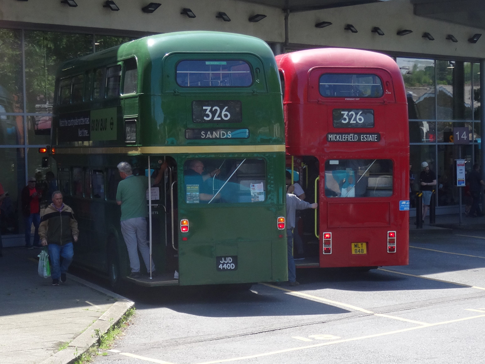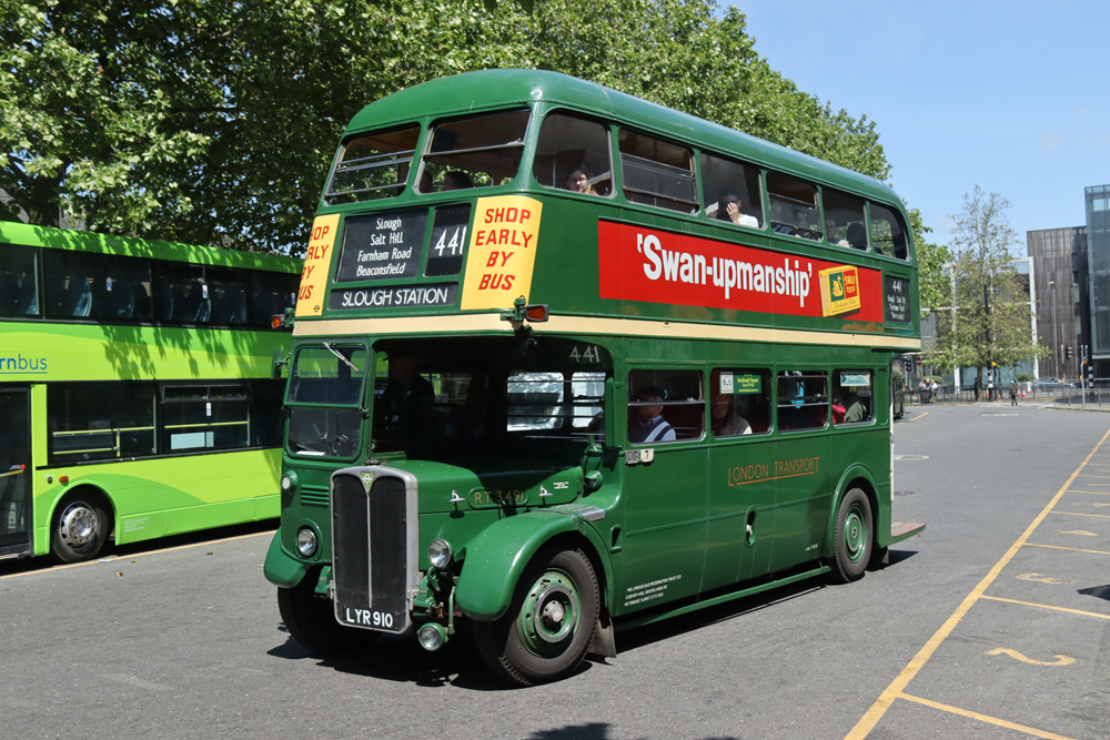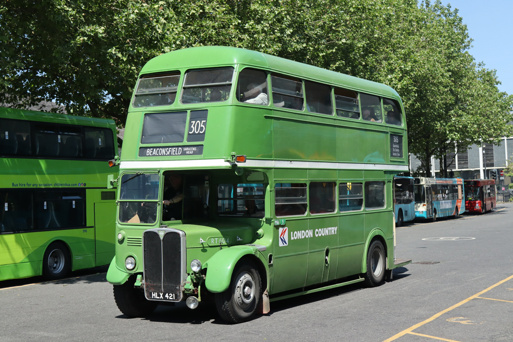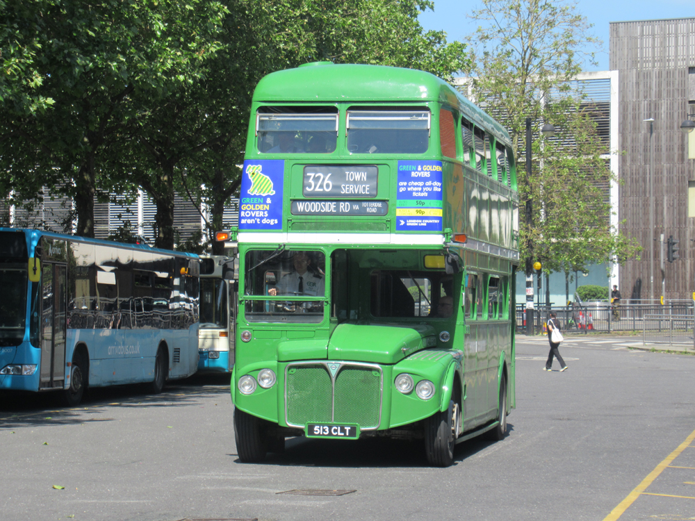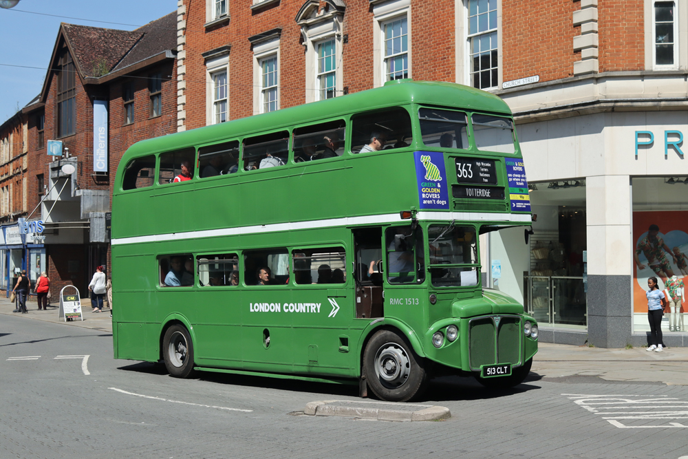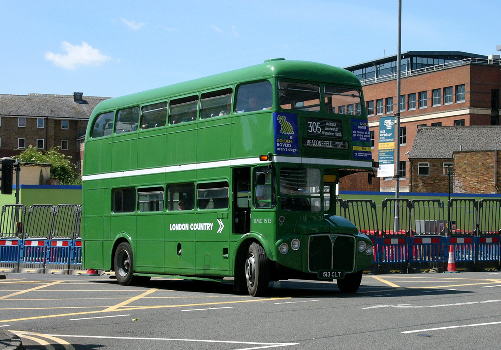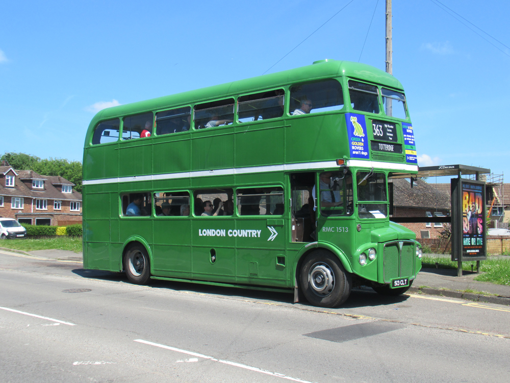 Another half cab decker to carry NBC Green is RMC1513, seen passing All