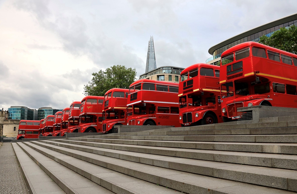 wrapped to advertise his visit and is seen at London Bridge on 31 May making a