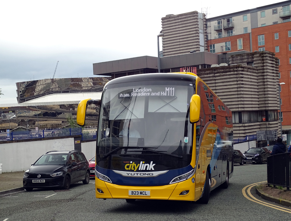 Scottish CityLink livery. It leaves Birmingham at 1100hrs.