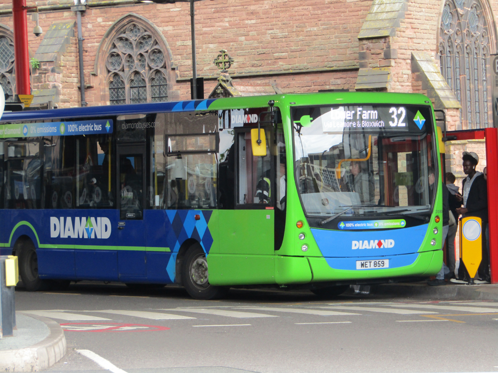 Fourth is an electric Diamond Centro bus WET 859 at Walsall
