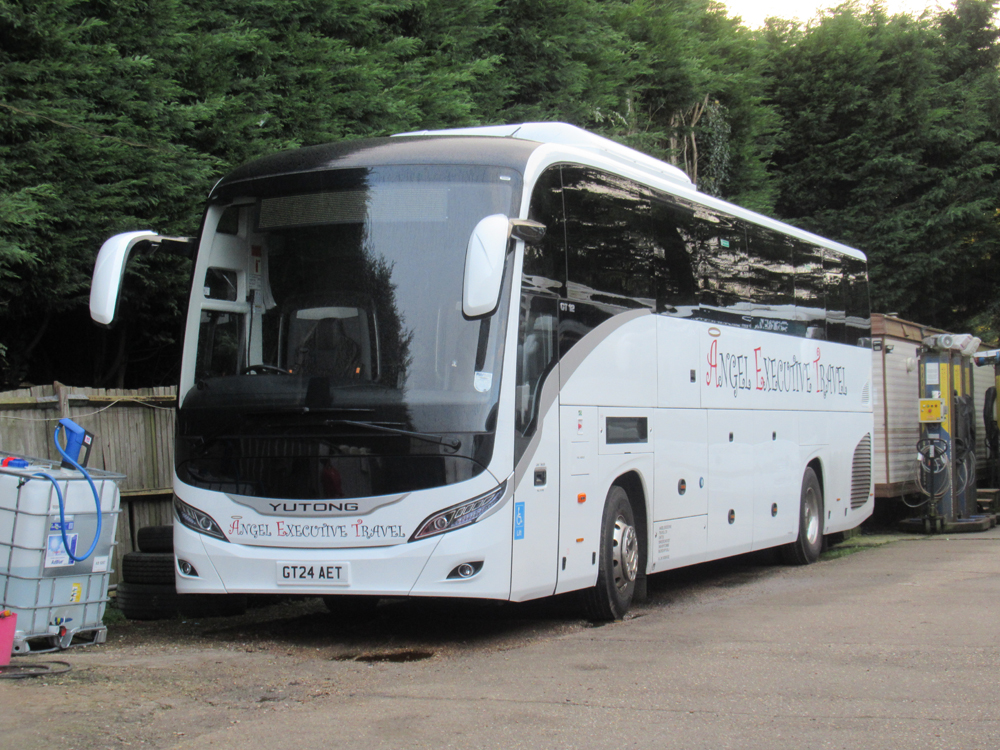 tri-axle. It is shown in the yard of Angel Coaches. Previously it was