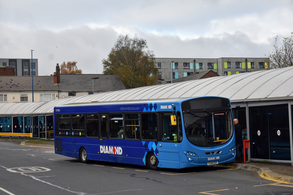 Victoria Bus Station. Also sporting the TK Maxx wrap is LT 958 at Marble
