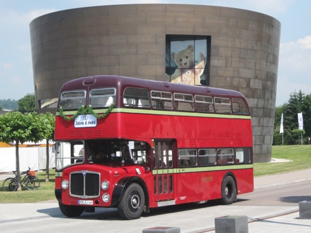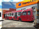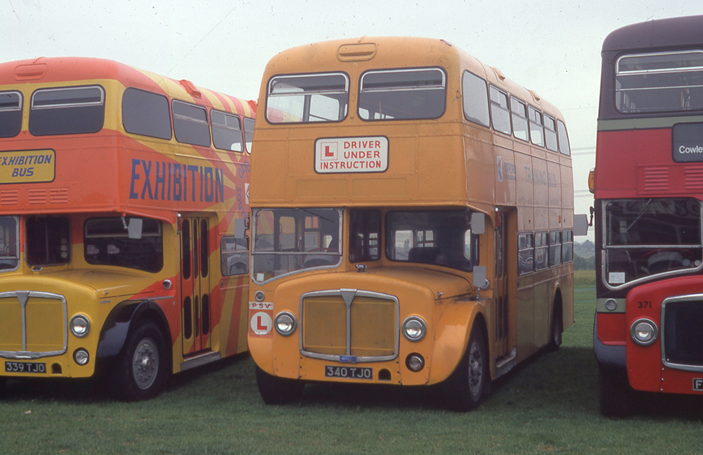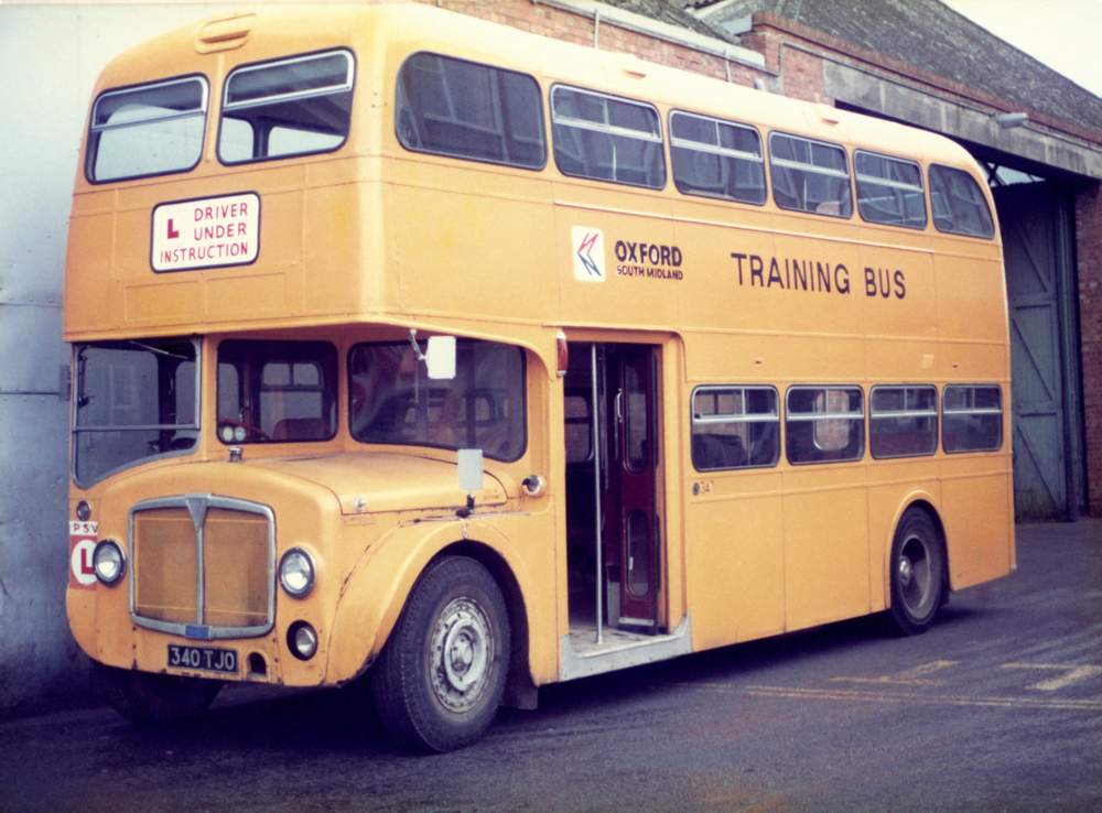 1964 AEC Renown 3B3RA with Park Royal H38/27F low height forward entrance body. 340 was one of three of the batch that was converted for OMO operation in late 1971. In March 1976 340 was withdrawn and converted into a driver trainer to replace Regent V 200. 340 was repainted yellow and earned the nickname "yellow peril" even after it was joined by similar bus 360. 340 lasted in this guise until 1985 when it was sold to G.Wareham at the Oxford Bus Museum as a source of spares. It was later cresold to A.Blackman for restoration and continued preservation in March 2004 who repainted it into original COMS livery and resold it for export to Company Bus Passion, Katzernstein, Neresheim and reregistered HDH BJ64H.
