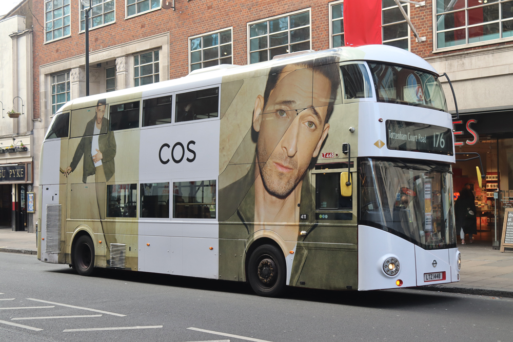 Some of the Cos adverts feature a male model - including Go Ahead's LT448 nearing journey's end on 15 March.
