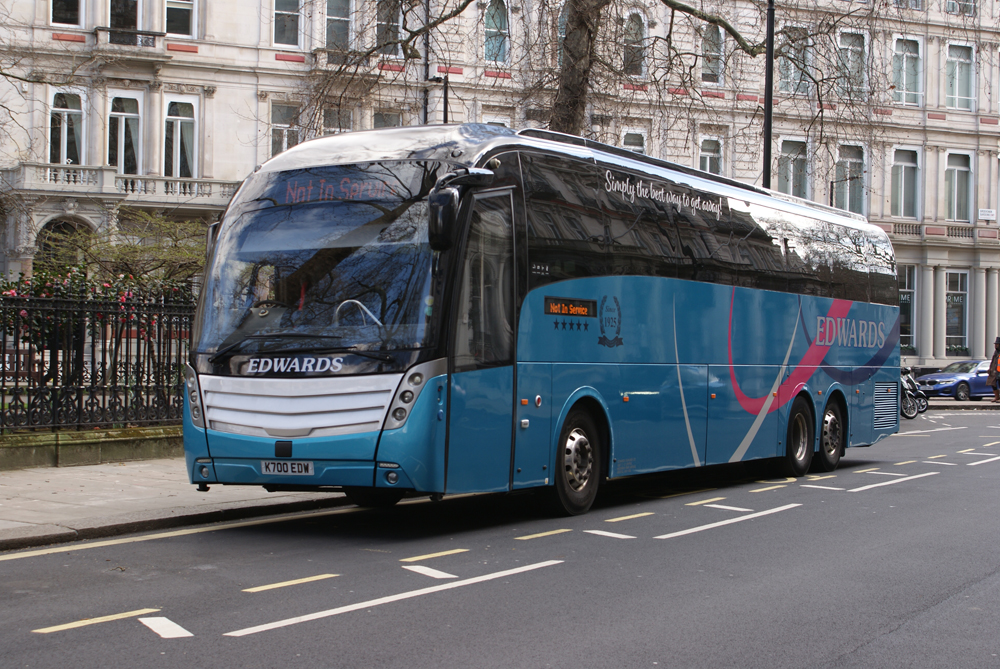 Around the corner I found Edward’s Coaches K700EDW in the company livery