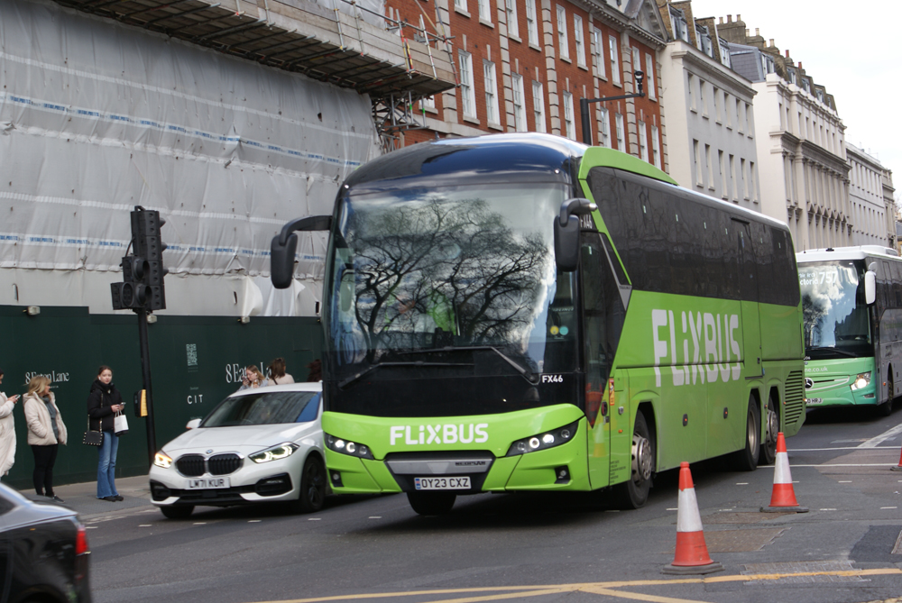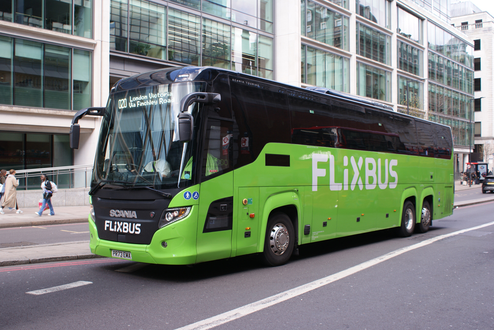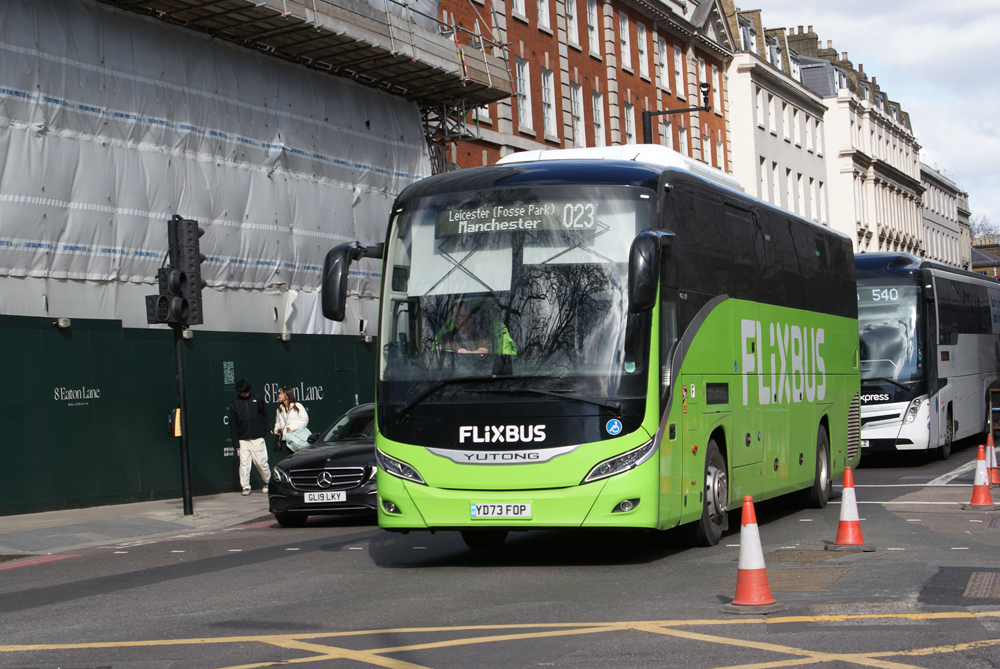 Flixbus coaches are now a common sight in Victoria as shown by OY23CXZ,