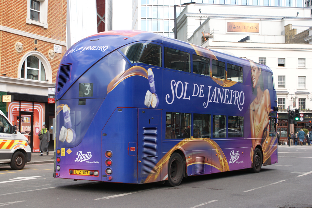 Transport UK LT 707promotes Sol de Janeiro at Victoria Station