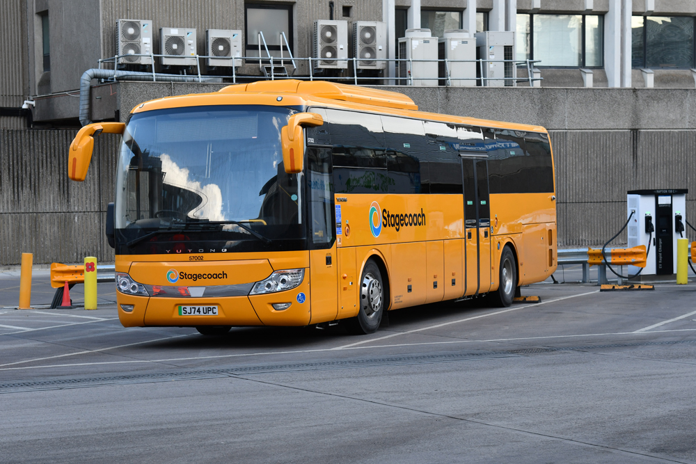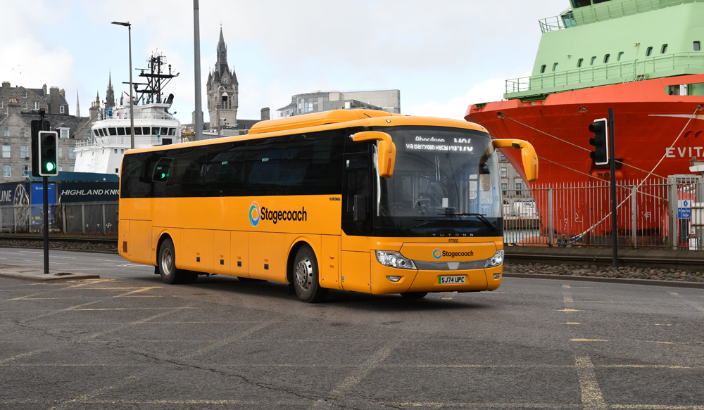 57002 - SJ74 VPC one arriving at Aberdeen Bus Station from Aberdeen Stagecoach Northern New Yutong TCe12 Electric on M96 Inverness to