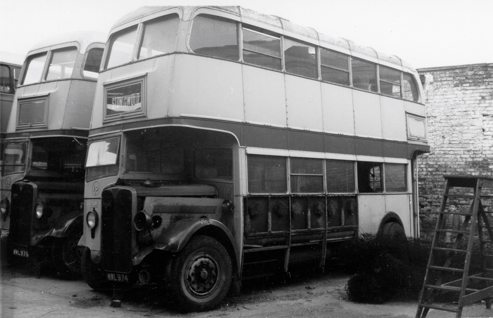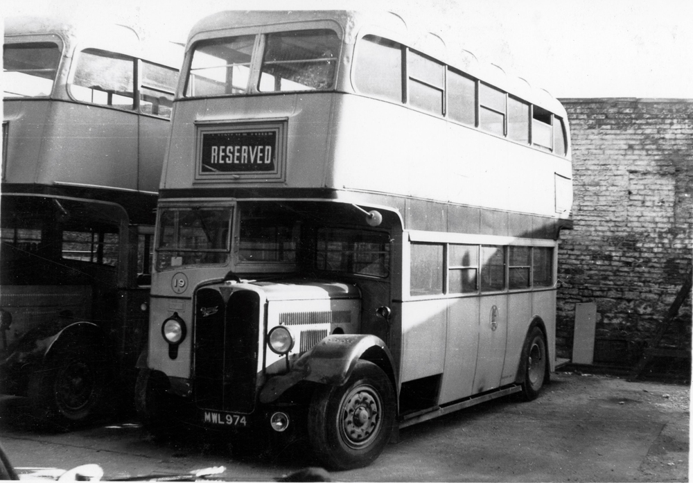 948 AEC Regent II with Weymann H30/26R body, renumbered H874 in 1952. Withdrawn in February 1960 and sold to PVD (dealer) Dunchurch. It was resold to Kearsey, Cheltenham in January 1961 as their fleet number 19A where it lasted in service until January 1965 when it was withdrawn and stayed in their depot yard until derelict by May 1966.It was sold for scrap in December 1966.I have no images of this bus with COMS just a couple attached with Kearsey's.340 340TJO