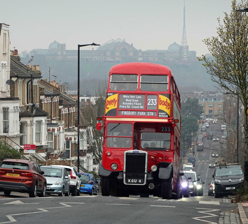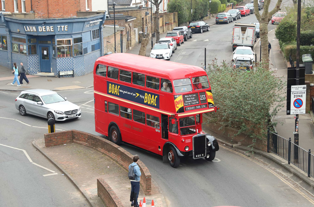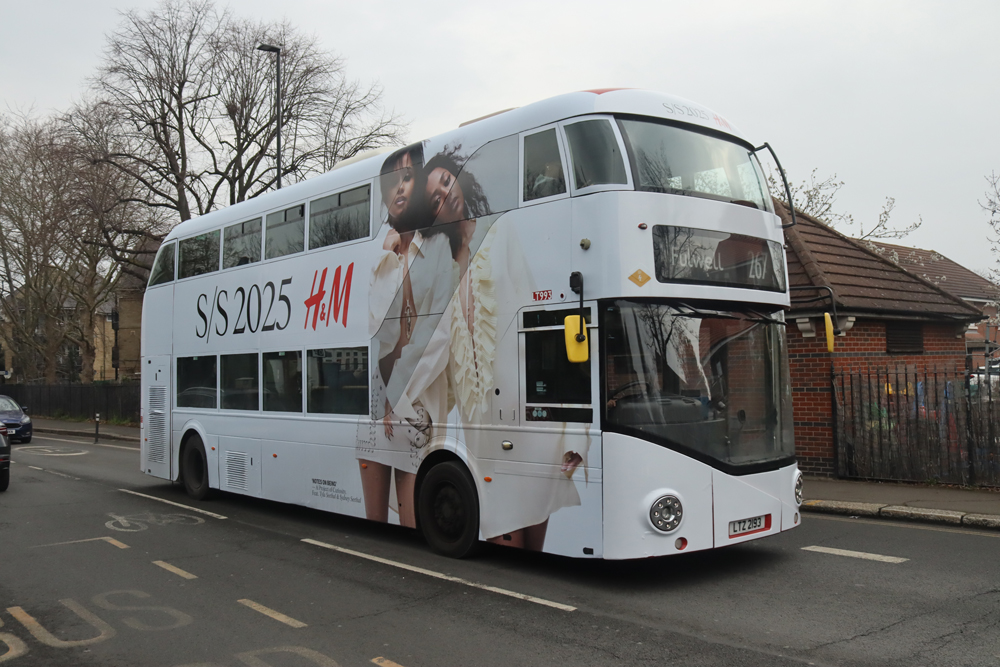 Transport UK's allocation of New Routemasters at Twickenham garage have only recently found favour for all over adverts, bringing some colourful variety to suburban route 267 linking Hammersmith with Fulwell.