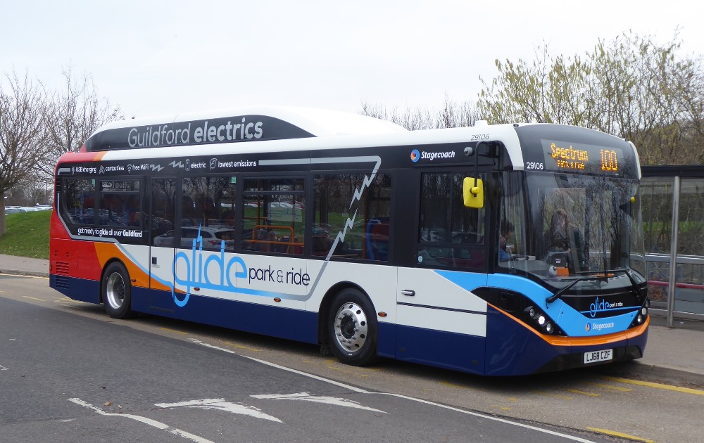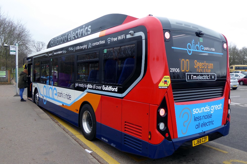 Stagecoach South 29106 with the 100 Guildford - Spectrum Leisure Centre. The