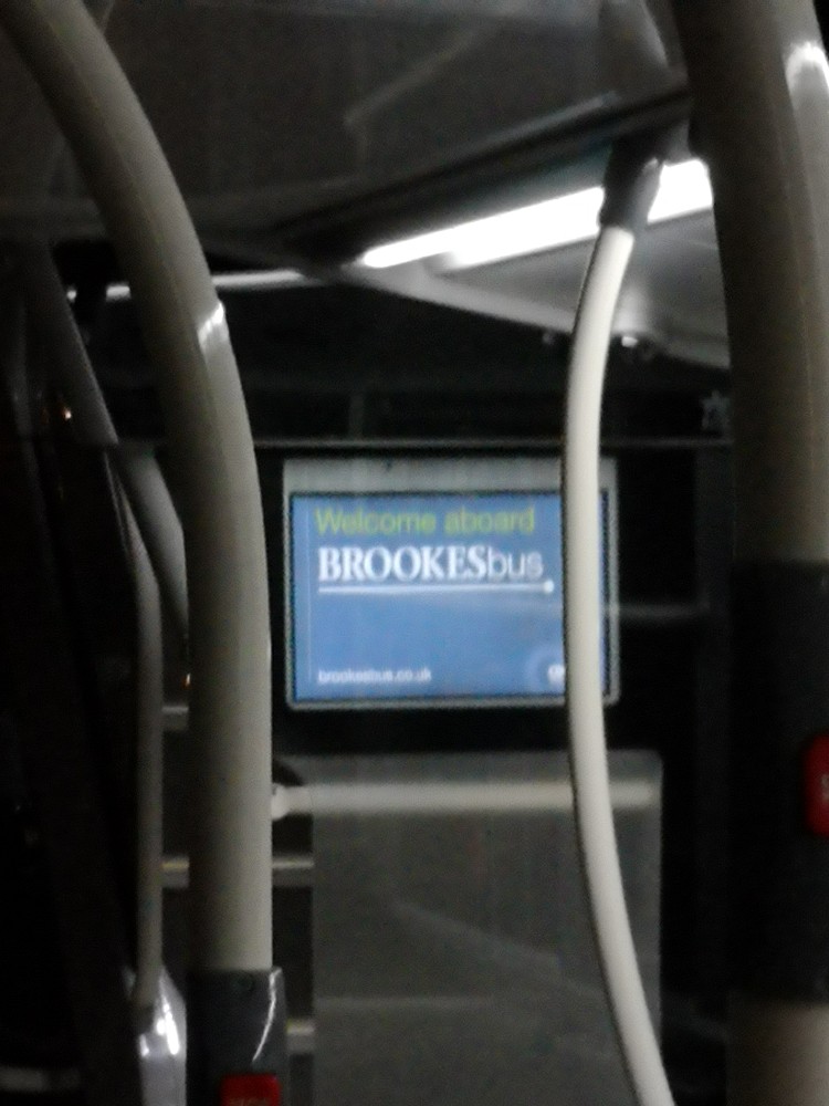 See attached pictures. In the third picture the screen is telling us we are on a BROOKESbus service, but it was the X3 service I was on!