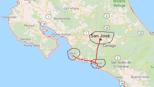 The trip from Jacó to Quepos also takes around 2 hours and the bus cost was