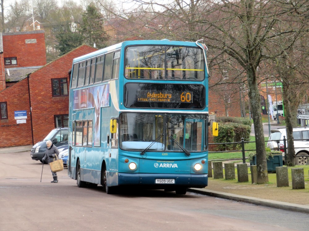 Arriva DAF 6309 at a grey Buckingham Bus stand prior to returning to Aylesbury
