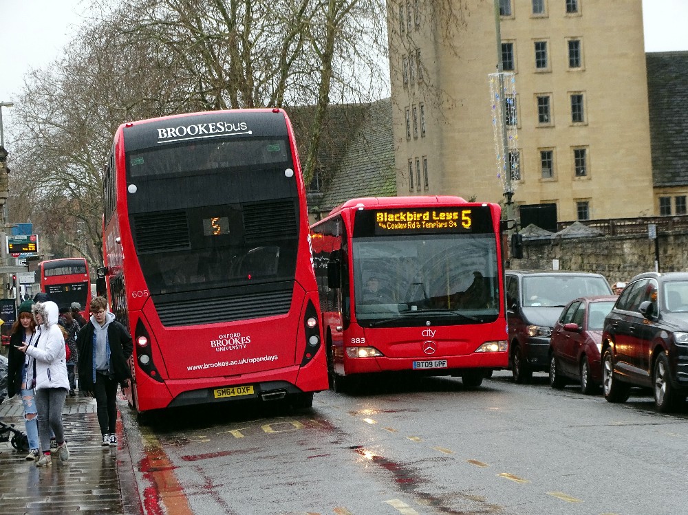 MMC 607 is passed by Citaro 883 both working 5 road on