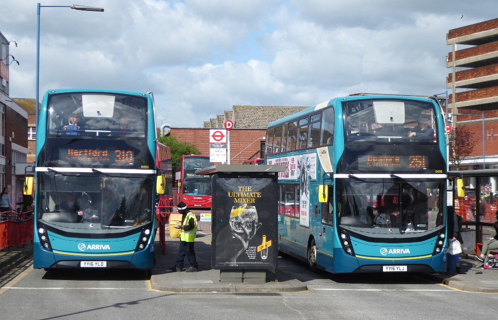 Arriva Kent & Thameside's 6493 on the 310 and 6498 working the 251 seen at