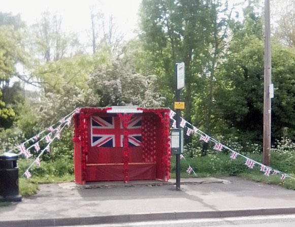 I popped up to the village shop here in Sandford-on-Thames today and saw that the bus stop outside had been duly decorated for the VE Day 75 commemoration.