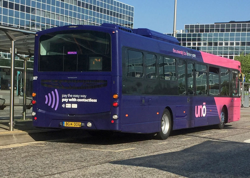 I stopped off at MK in the hope of getting a rail replacement to Northampton which never sadly turned up, however I was rewarded with this lovely Uno Eclipse, 367 BG14OOX, normally based at Uno’s Hatfield base but has transferred to Cranfield and is seen here about to take a C11 to Bedford on Sunday May 31st 2020.