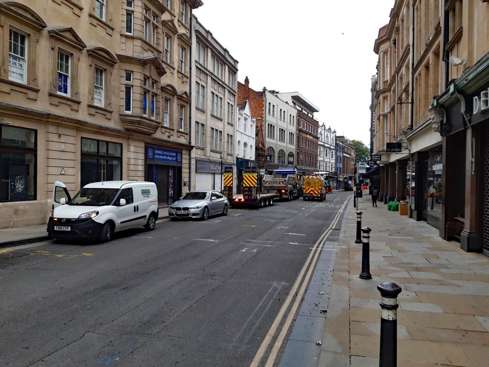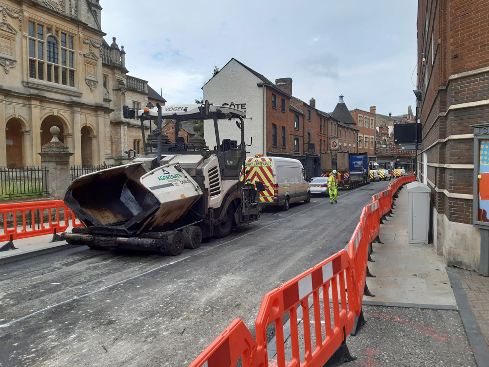 George Street is closed from June 1st-6th for re surfacing, closing Gloucester Green again for six days. Below are some pictures taken of the work on June 4th.