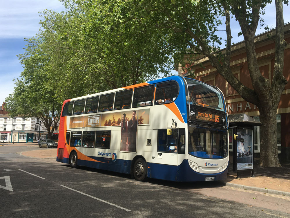 A decker working the B5 is unusual and above we see 10067 in Bridge Street