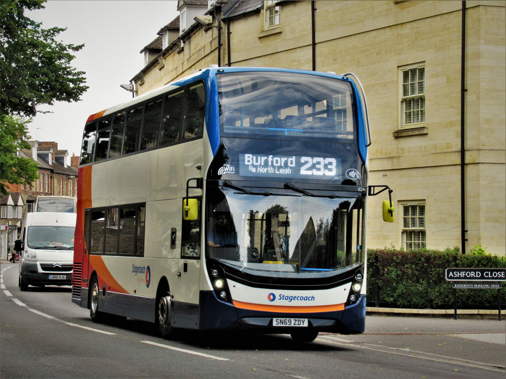 from Bristol writes to say "As this week marked the final week of Swanbrook's 853 service, I rode on the 1100 ex-Cheltenham on Monday (July 20th) and took the attached photo of Scania Levante, FJ07DWP, at Witney. It was good to see that Stagecoach West had printed leaflets with the new 853 timetable which were available on the coach." The delightful picture from Richard Kemble taken on July 20th in Witney.