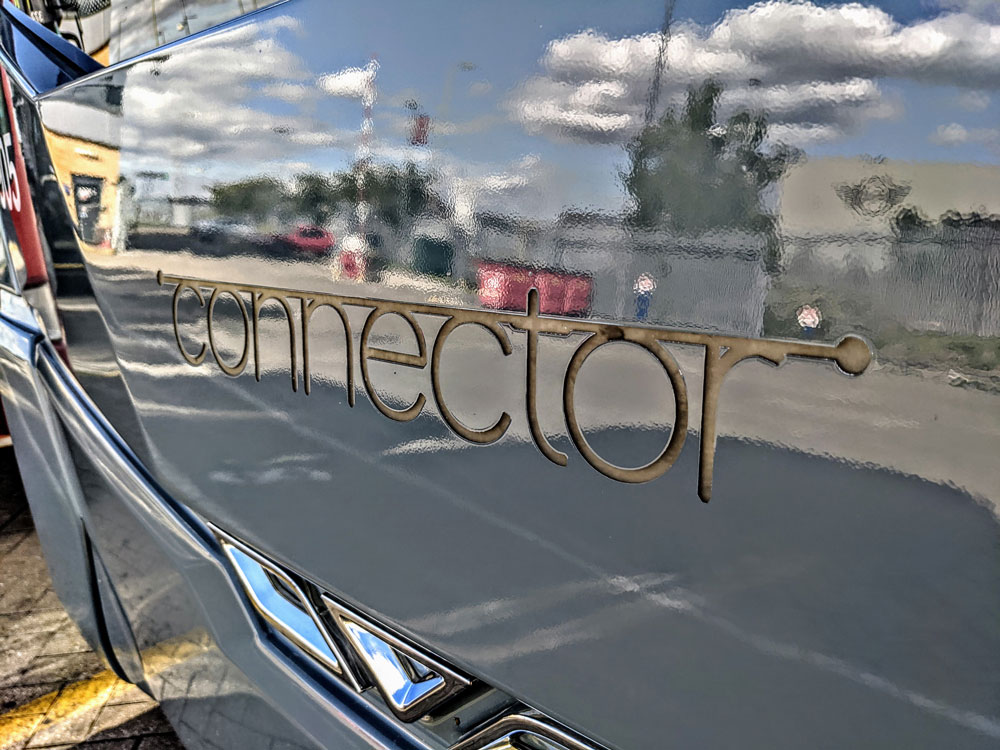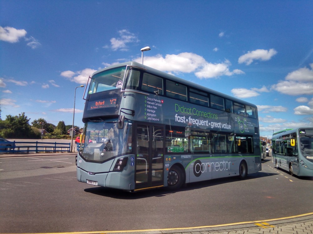I cannot see clearly in the photo, but it looks like Thames Travel's 623 has been named after someone. There is a sticker just above the connector logo.