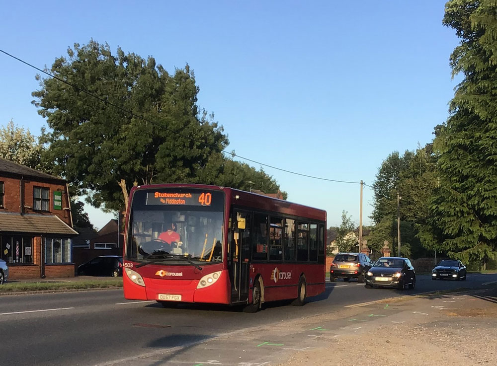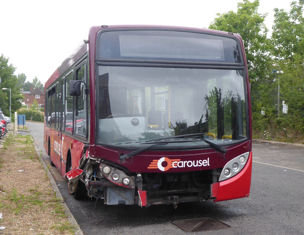 What shame that when operators provide the much needed ways to get around, even to country villages, that motorists seem unaware that driving too fast on narrow roads can be dangerous. A victim of this, as locally reported, was Carousel's 420, an M A N 14-200/Alexander E200 single deck working the service 40 between Thame and High Wycombe. Damage was quite significant.