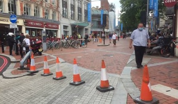 Some readers may have noticed that cones have been placed on Broad Street and Cross Street, between 10am and 6pm, and wondered why they are there. It is understood that this is a temporary measure to re-enforce the no vehicle access/entry and pedestrianisation of Broad Street, Queen Victoria and Cross Streets, until a more permanent solution can be found.