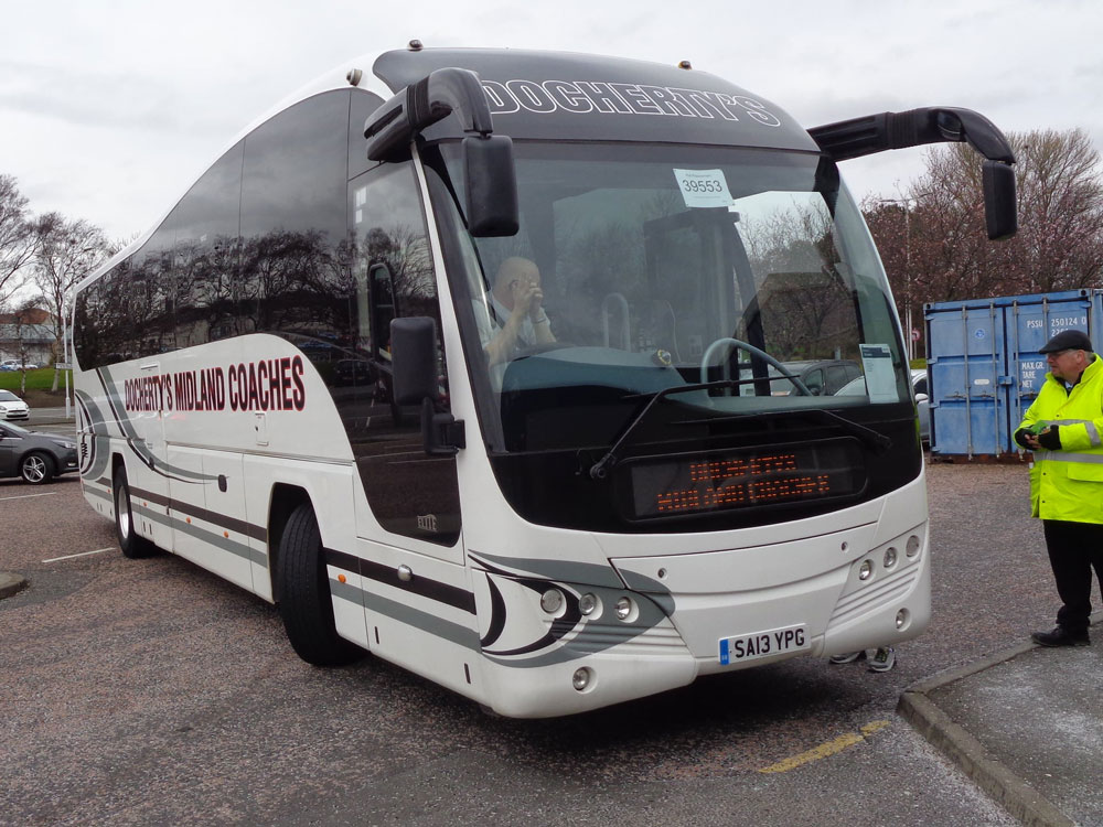 coach to the sport by Readybus sending this hi spec Higer Scania which is