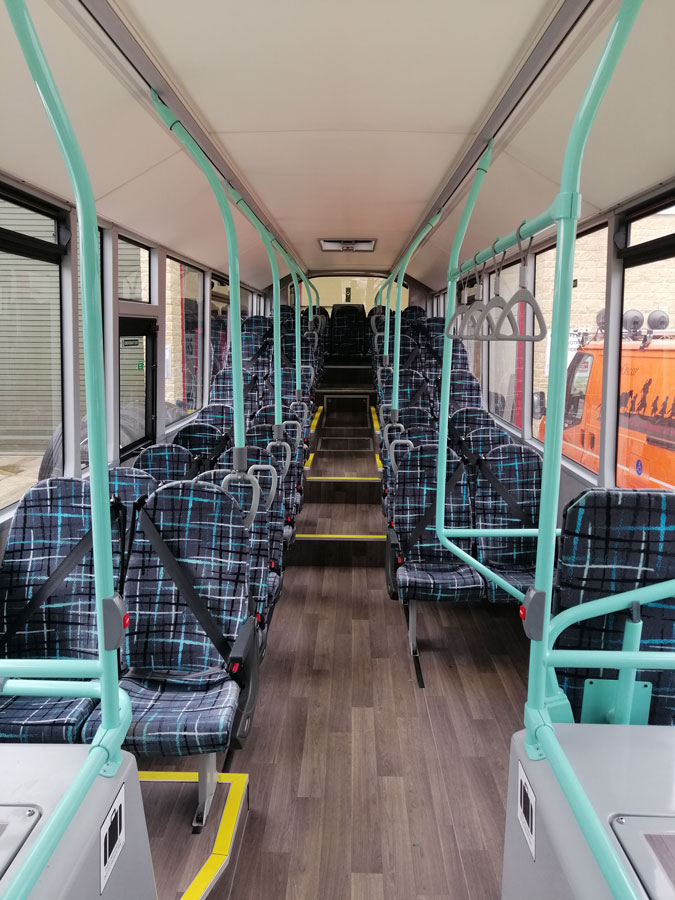 It is a bus with standard interior and upholstery, the seats do not have high backs or headrests, and it is branded for the wrong route. Route 853 is a strategic route with a well-established identity and reputation for comfort. I fear that its loyal passengers will be disappointed.