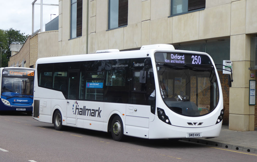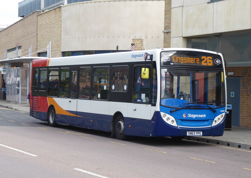 E200 36984 in Pioneer Square, Bicester with local service 26 to Kingsmere on