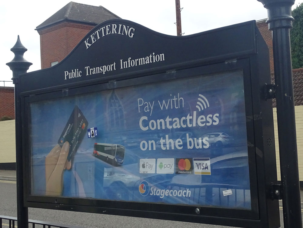 for 39699 on an X4, 18108 and 15455 on towns, these are normally Solo routes.The info board was taken at Kettering Bus Station !