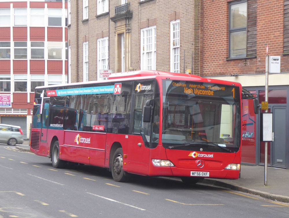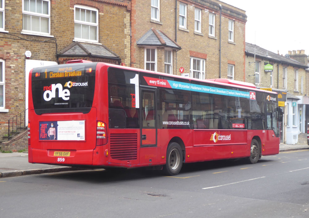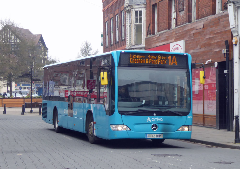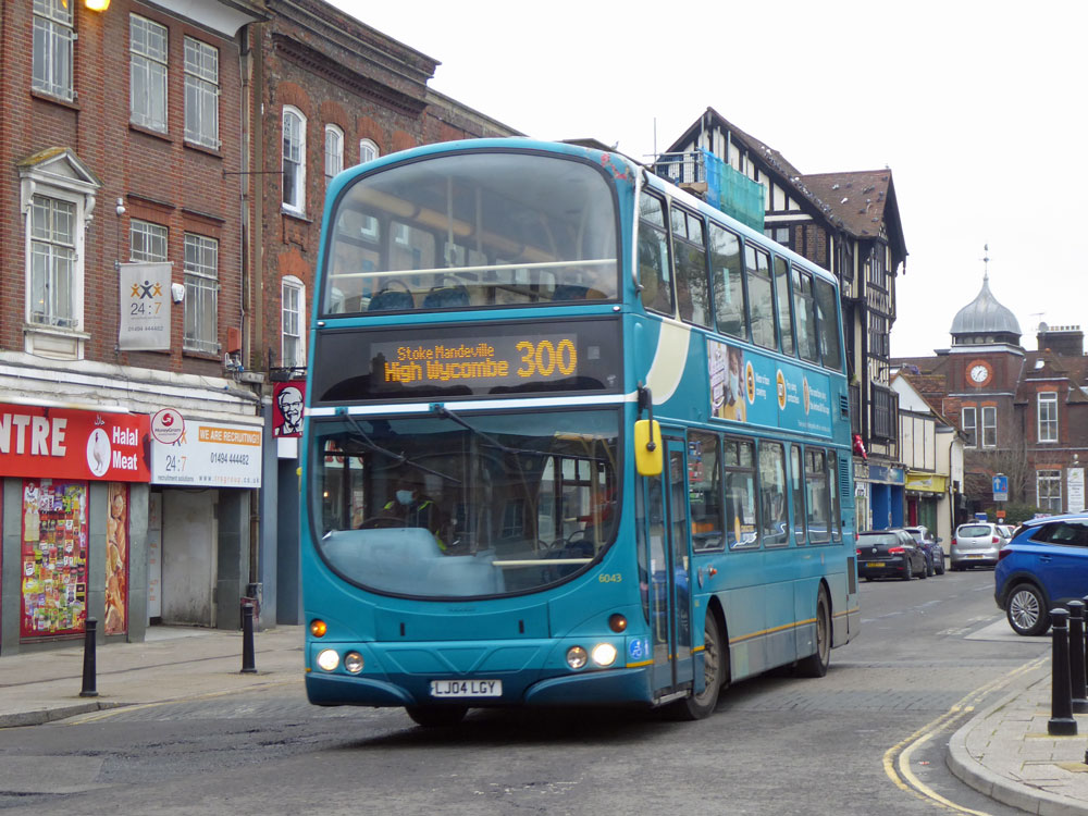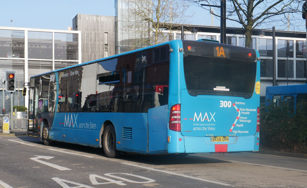 Arriva 6049 heads for Aylesbury with a 300 working its blind alternately showing
