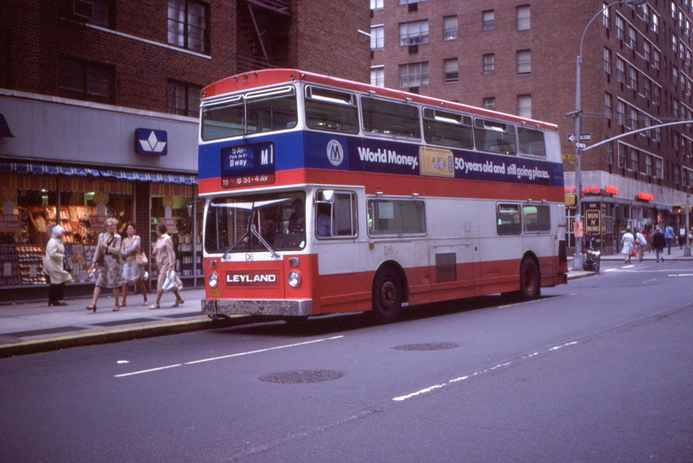 operated by Manhattan and Bronx Surface Transit with fleet numbers D1 to D8.