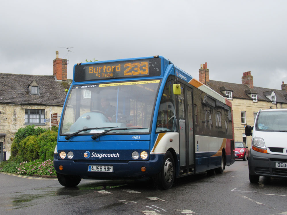 Seeing Seeing the news of Stagecoach Oxford coming under common management with Stagecoach West reminded me of the picture I have from March 1984 showing City of Oxford Bristol RE 85 crossing with C&G Leyland National 3503 at Burford, during the last fortnight of operation of the short-lived jointly operated X44 service between Oxford and Gloucester.